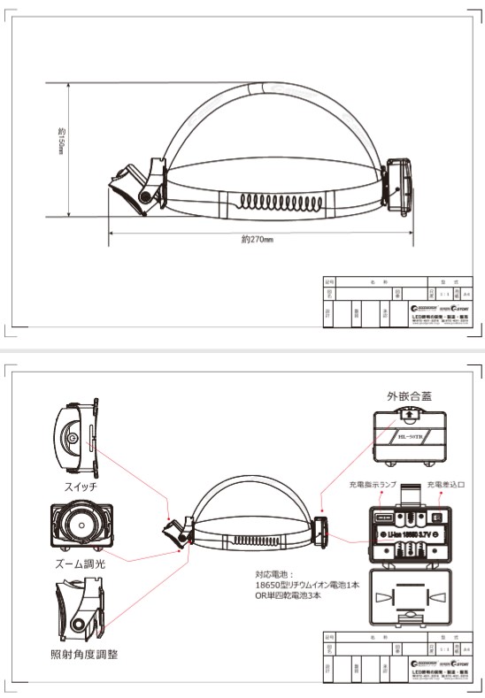 | 使用時間 | 18650型リチウムイオンバッテリー:約2時間 単4乾電池:Hi 約6時間/Lo 13時間 (乾電池の種類によって異なる) |