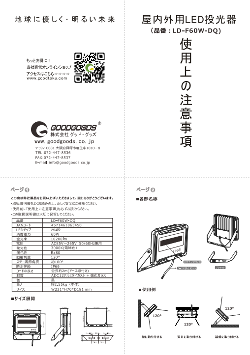 | セット内容 | 投光器本体、保証書、取扱説明書 |