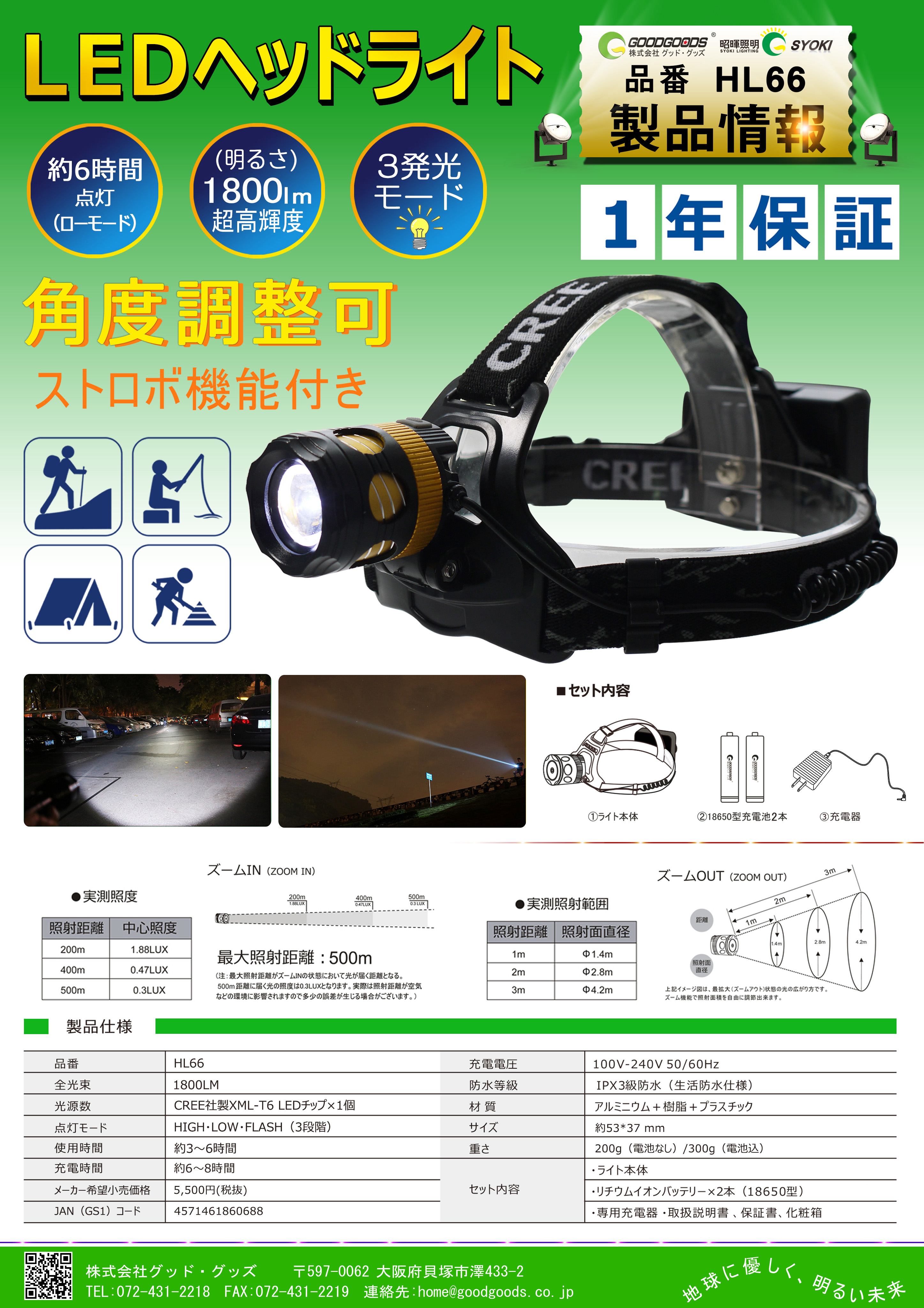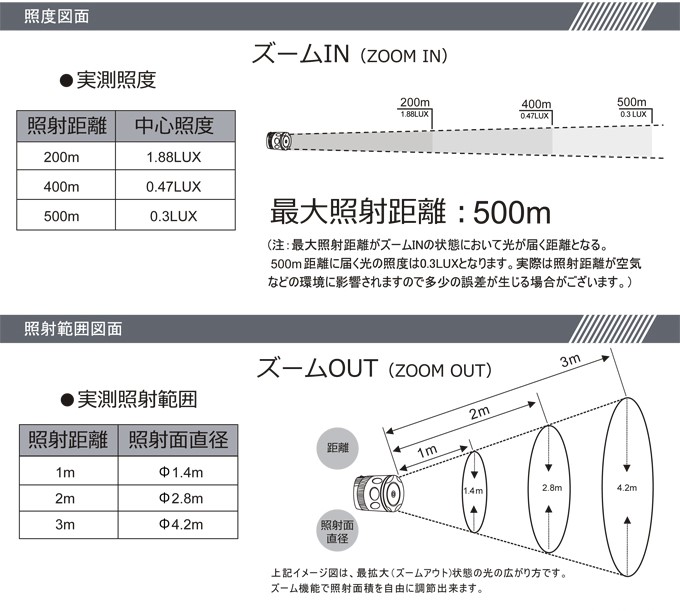 | 特徴1 | ズーム機能付きLEDヘッドライト |