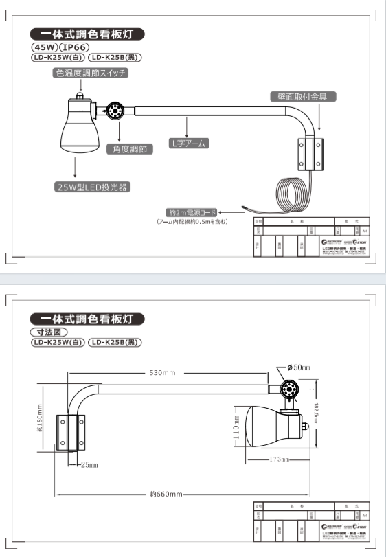 品番 LD-K25B (本体色白:LD-K25W はこちら)