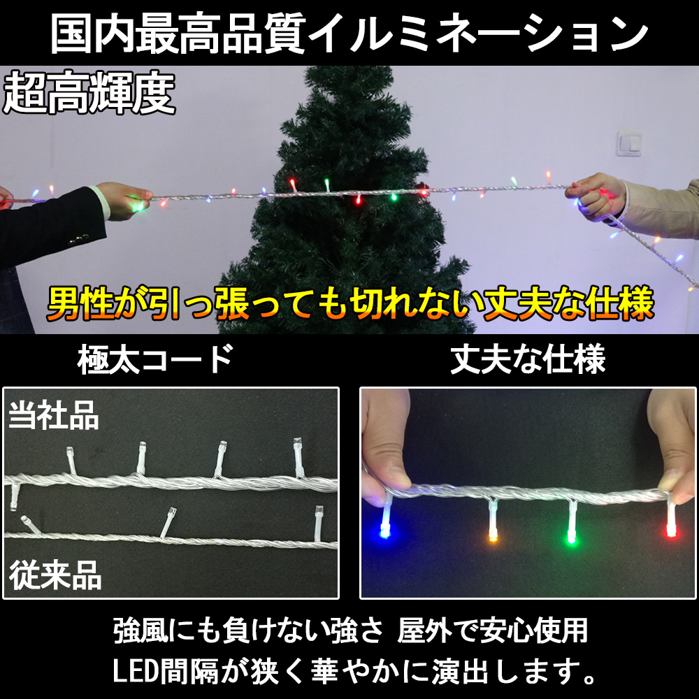 法人・店舗・会社・プロ人向け 事業・業務用イルミネーション 8種類の点灯パータン切替え 1.Combination:2から8までを順番に繰り返す 2.In Waves:波のように点滅 3.Sequential:順番にゆっくり点灯 4.Slo-glo:ゆっくり点灯しゆっくり消える 5.Chasing Flash:激しく点滅 6.Slow Fade:全電球ゆっくり点灯ゆっくり消灯 7.Twinkle Flash:全電球が一度にまたたく 8.Steady on:全てが常時点灯する ・ACプラグをオスとメスで連結するだけで複数連結可能 ・メモリー機能搭載 ・断線しにくい丈夫な電源コードを採用 ・長寿命・高品質 LED電球は二重保護加工を採用し、従来品より耐久性UP!