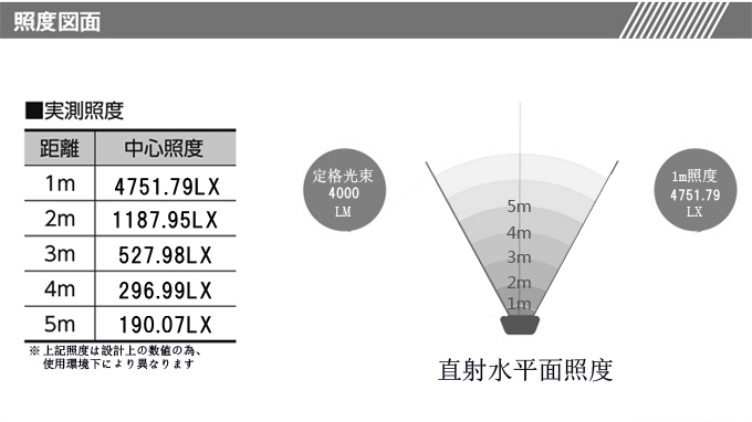 | 特徴2 | 60°配光:集光性向上 遠距離照射 |